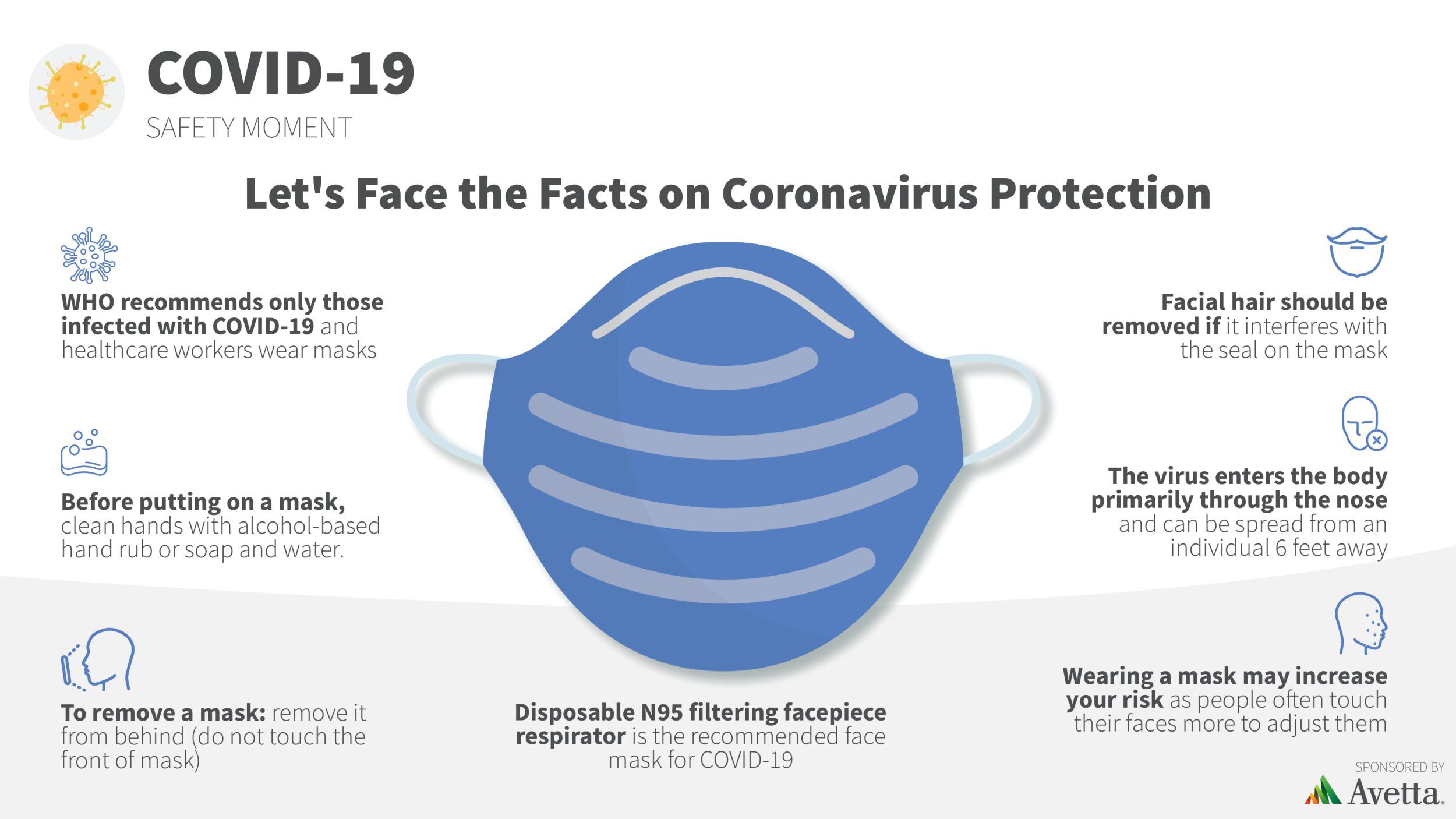 This document details when and how to use a face mask. This a great document to post in your office for all your employees to read and review.